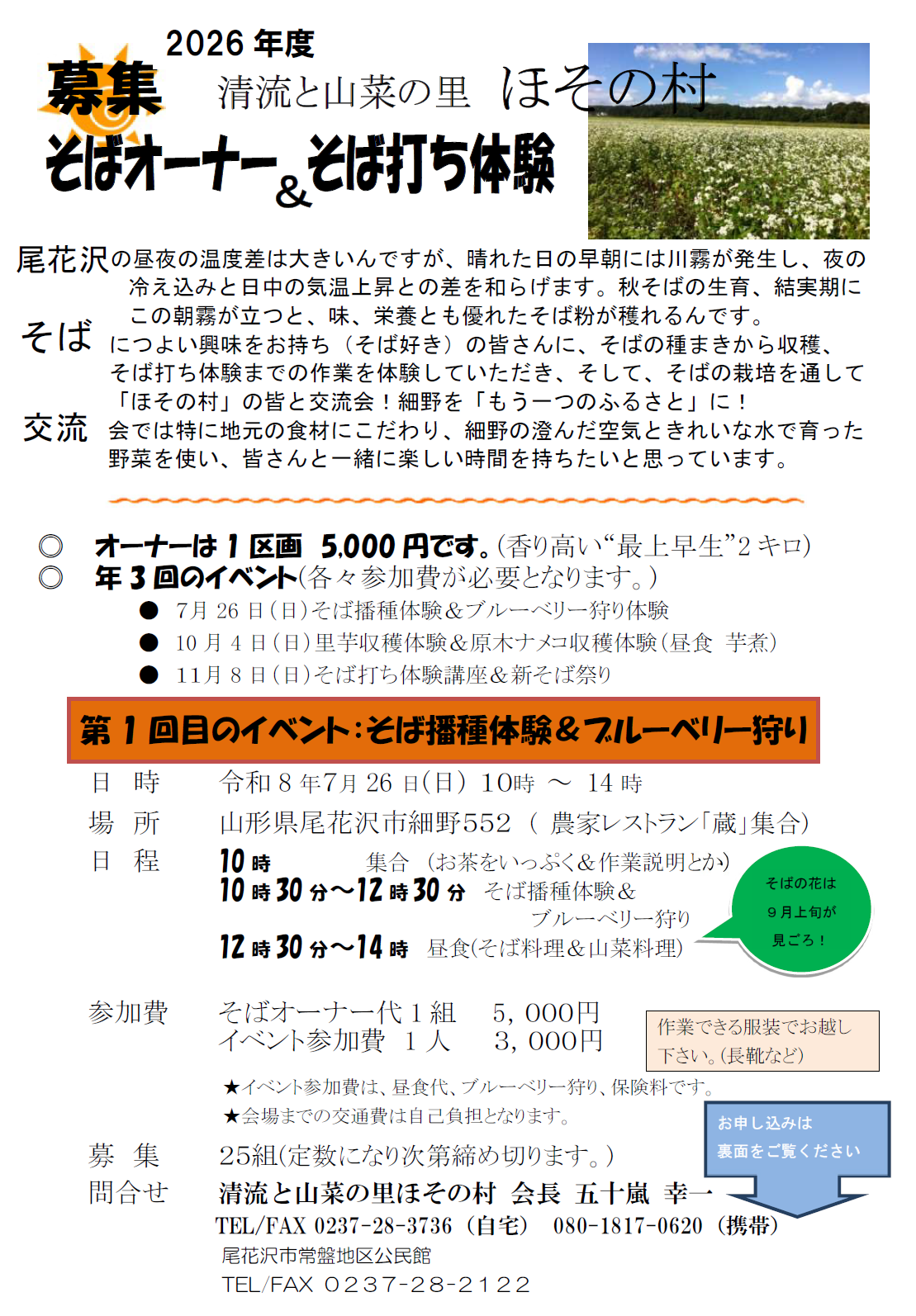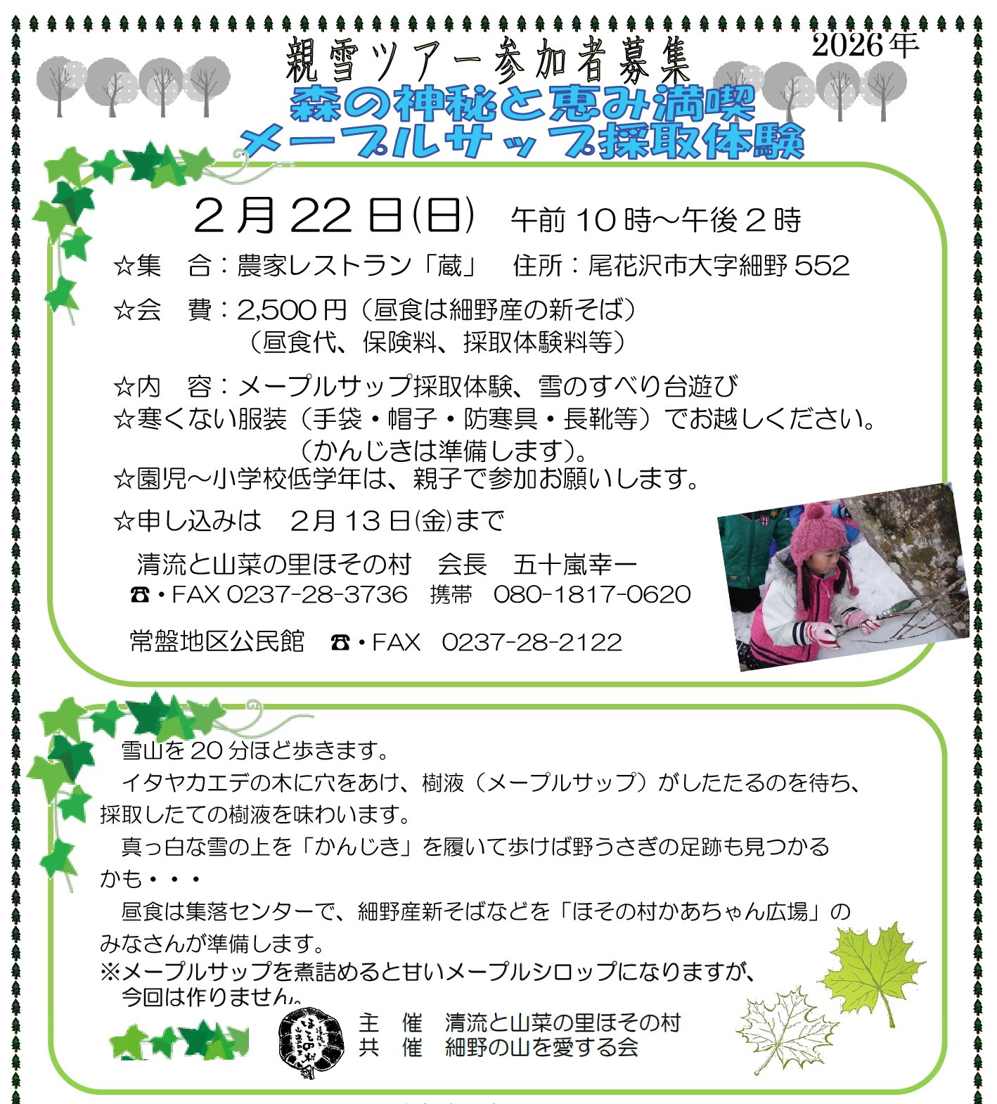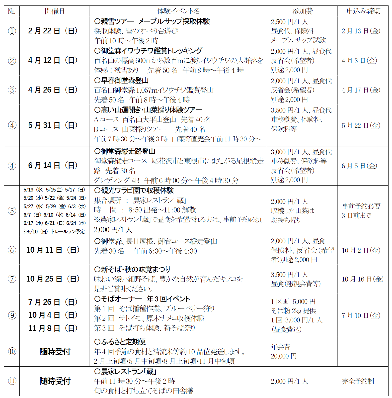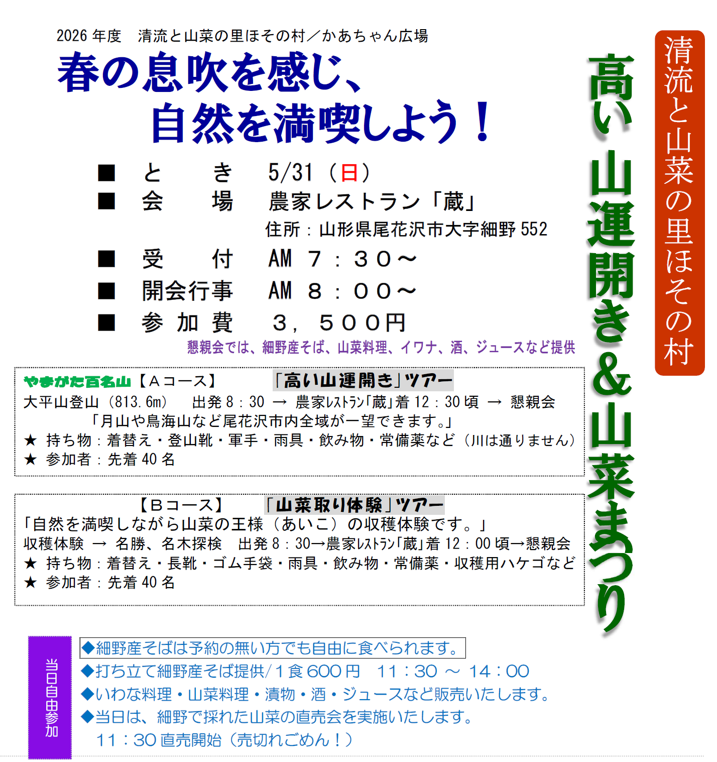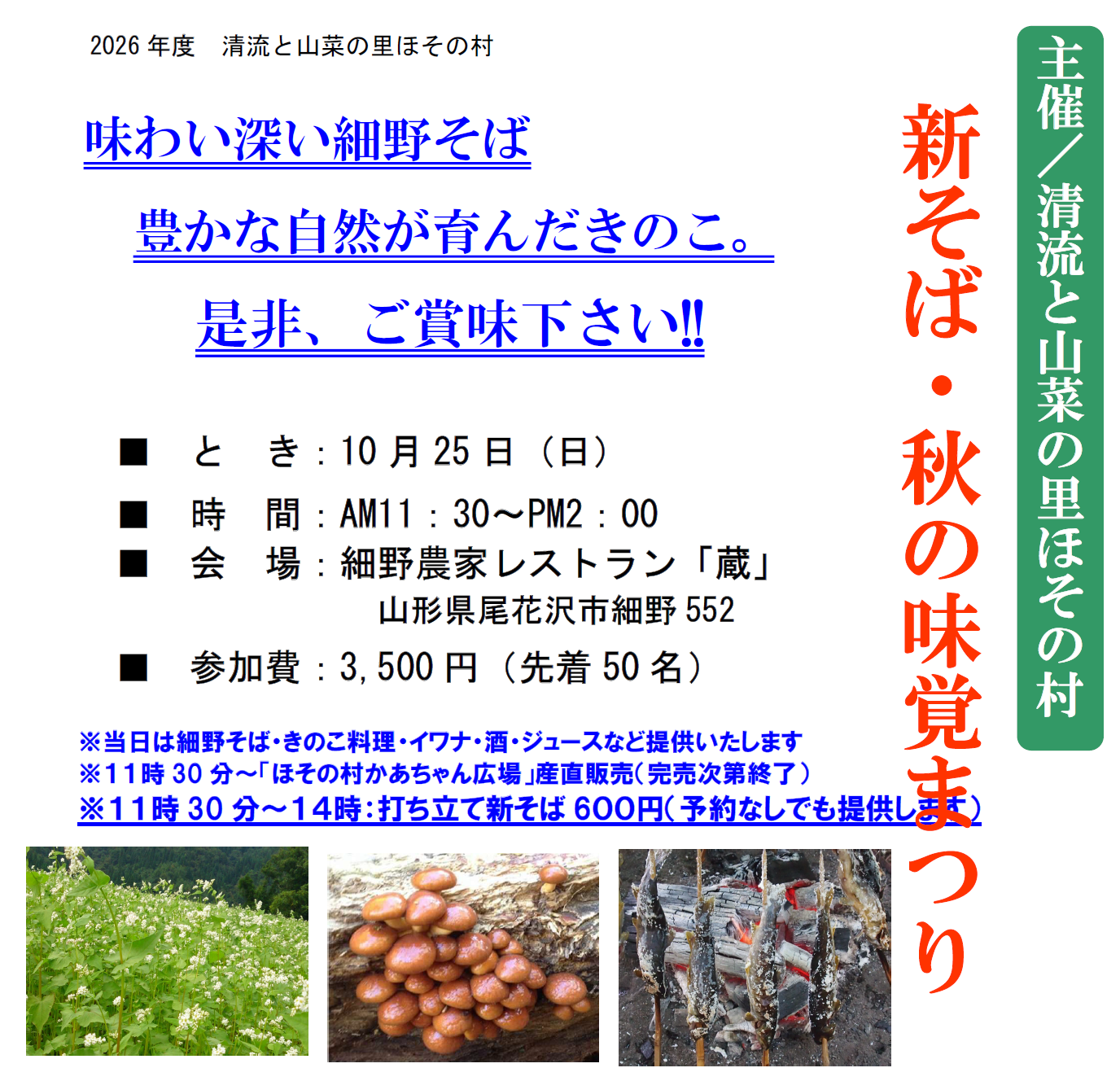 清流と山菜の里 ほその村 2026年度イベント一覧